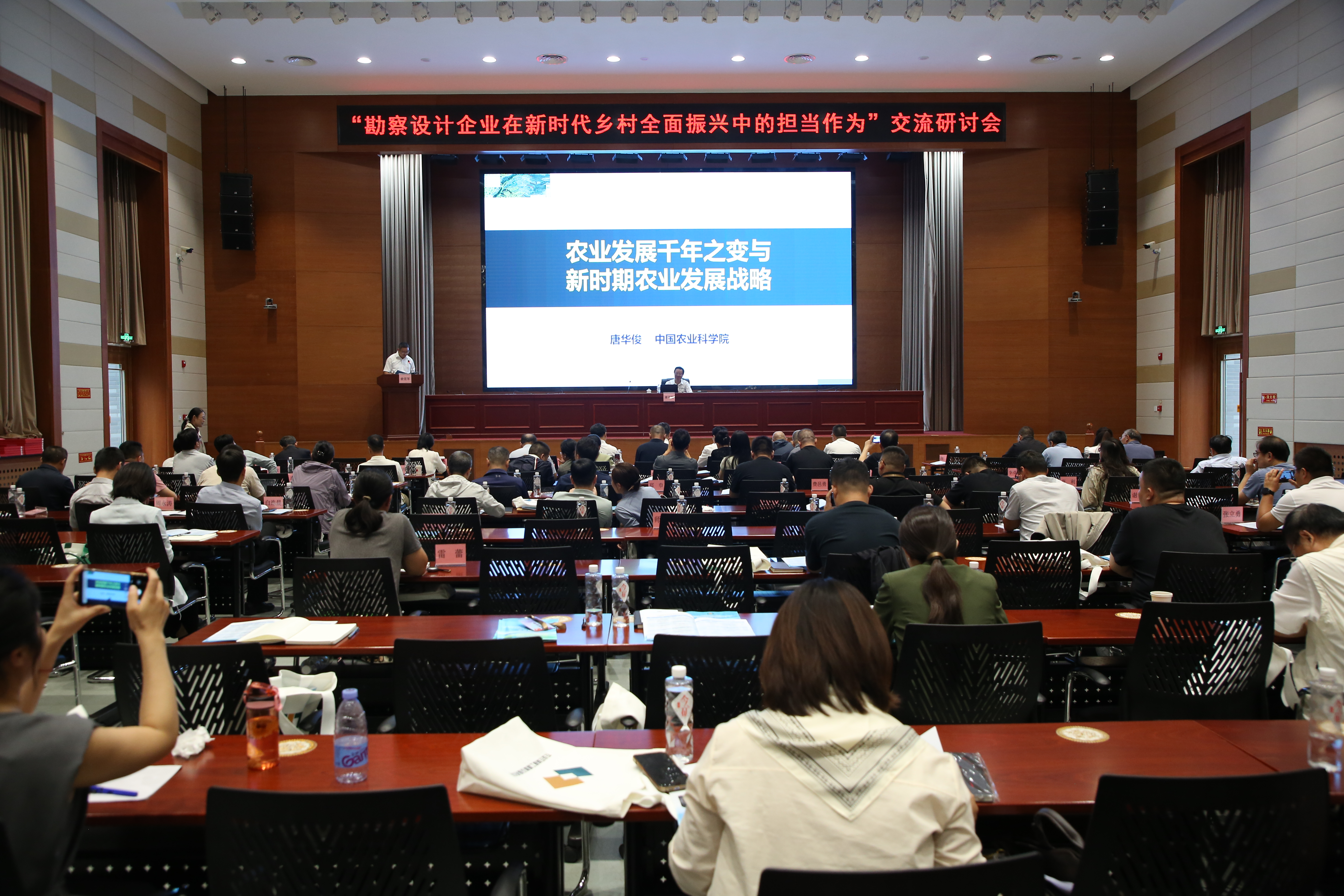 9月16日下午,中国勘察设计协会农业与乡村建设分会现代农业与乡村振兴交流研讨会在北京举办。本次大会以“新时代乡村建设领域更好发挥工程咨询和勘察设计行业作用”为主题,邀请中国农业科学院院士唐华俊,国家卓越工程师、中国中建设计研究院有限公司总建筑师薛峰,浙江大学建筑工程学院教授王竹等多位专家大师进行现场交流分享,100多位来自全国各地的会员代表和专家学者到会研讨。会议由农业与乡村建设分会常务副会长兼秘书长、农业农村部工程建设服务中心总工程师俞宏军主持。